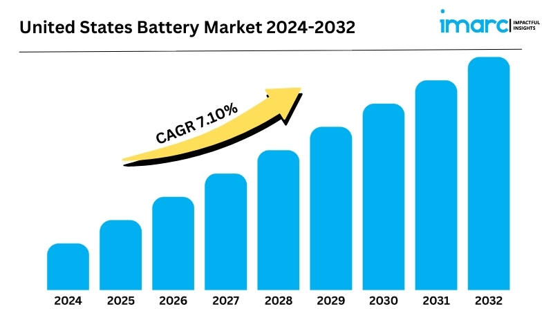The United States battery market size is experiencing significant growth, driven by increasing demand from the electric vehicle (EV) sector. According to the latest report by IMARC Group, the market is projected to grow at a CAGR of 7.1% from 2024 to 2032.